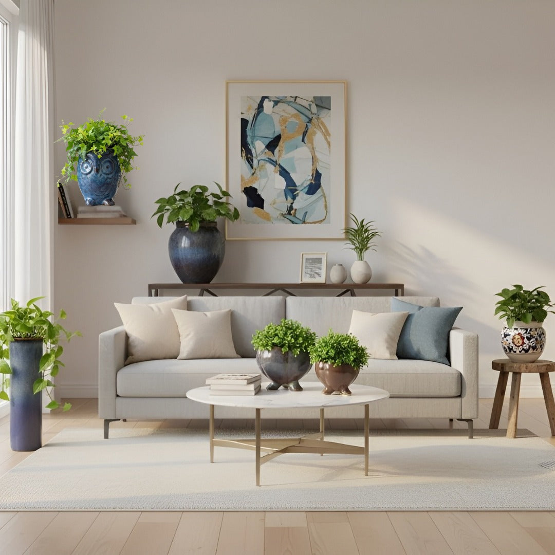 Handcrafted Reactive Blue Ceramic Owl Planter | Indoor & Outdoor Pot - 28.5 x 21.5 cm